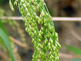 キビといえば桃太郎の吉備団子を思い出す。吉備団子は、地名の吉備を植物の黍にも関連させて、キビとモチ米を主原料にしたお菓子です。キビは、主に良質のタンパク質と脂質、食物繊維、鉄分、ビタミンB1を多く含み、漢方では、消化器系の機能が弱まっているときにその働きを助けたり、せきやたんを止めるのに効果があるといわれている。いわゆる雑穀の一つだが、近年の健康食品志向にのって需要があるようだ。