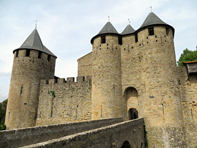 ヨーロッパ最大規模の城塞が残り世界遺産に登録されているカルカッソンヌ。その歴史的城塞都市(シテ)にあるコンタル城の外観。