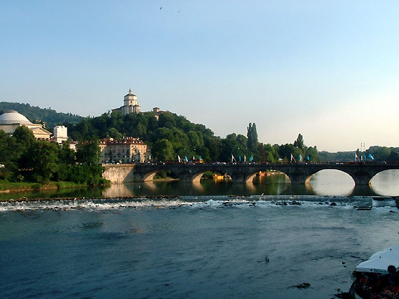 トリノ市内を流れるポー川と川から山側を移しました、もう一つはアルプス(フランス側)の写真で自宅から取ったものです。夕焼けでしたのでうまく移ったか判りませんが、とがった山はモンビーゾと言う山でイタリアとフランスの国境に位置します富士山より高い4000メートル級です。今年の夏に山の途中まで行ってきました。(F.Y さんより)