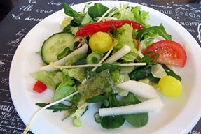 ランチでオランダ風パンケーキを食べる。ランチとしても食べ応えがある。「パネクッケン」と呼ばれている。クレープとピザの中間ぐらいの生地にチーズとかベーコンとかがのっている。レストラン「NED1671」にて。