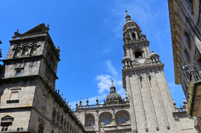 「免罪の門」は「聖なる門」とも呼ばれ、7月25日の聖ヤコブの日が日曜日と重なる年には、開くそうです。観光客や巡礼者たちで賑わっています。リュックを背負いホタテ貝を吊している人たちが巡礼者です。