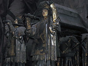 カテドラルの中にあるコロンブスの墓。棺を担いでいるのは当時のスペインを構成していた4人の国王である。