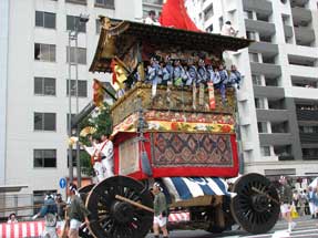 「上り観音山」ともいわれ、後の祭の山鉾巡行の先頭にたつ。山の上には楊柳観音像(ようりゅうかんのんぞう)と韋駄天立像(いだてんりつぞう)を安置する。もと舁山(かきやま)であったものを後に曳山(ひきやま)に改め、その名残りとして真木には松の木が立てられている。松の左二の枝に尾長鳥をつけるのも珍しい。