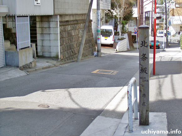 坂下近く南側に大名北条家の下屋敷があったためにこの名がついた。(標識の説明より)