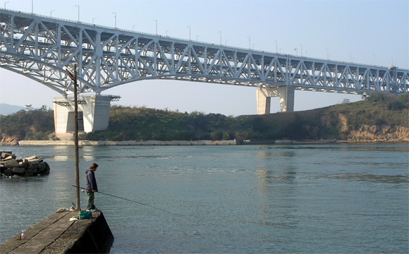岡山から瀬戸自動車道に入り、瀬戸中央自動車道(瀬戸大橋)の与島PA(香川県坂出市与島町)に立ち寄る。11月下旬だったが、小春日和でほぼ無風状態。船着き場の突端で釣りをしている人を見かける。直下の海中を見ると魚が集まっている。間もなく釣れる。メバルだった。群れていたのはメバルだったのだ。穏やかな風景が印象に残る。