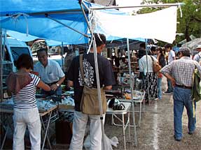 東寺境内にて、「弘法市」は毎月21日、「がらくた市」は毎月第1日曜日に開催される。どちらもお馴染みの市である。がらくた市は、弘法市より人手が少ないのでゆっくり楽しむことができる。